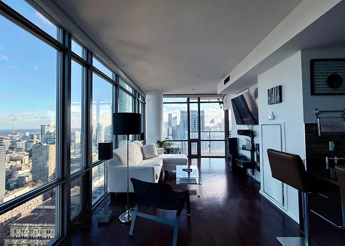 Das 79 m^2 große Murano Condos - Bay & College - Fully Equipped Downtown Toronto Condo liegt etwa 5 Minuten zu Fuß von der U-Bahn-Station Queen's Park entfernt und bietet WLAN für geschäftliche oder private Zwecke. Das 2-Zimmer-Apartment besticht durch seine Lage im Zentrum von der Stadt, im Viertel Toronto Stadtzentrum von Toronto.
